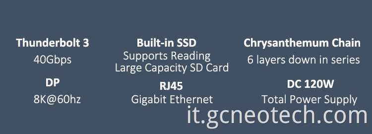 E. Porta Thunderbolt B Supporto PD 15W di ricarica (5V3A); supporto da 40 Gbps/s Trasmissione di dati ad alta velocità.